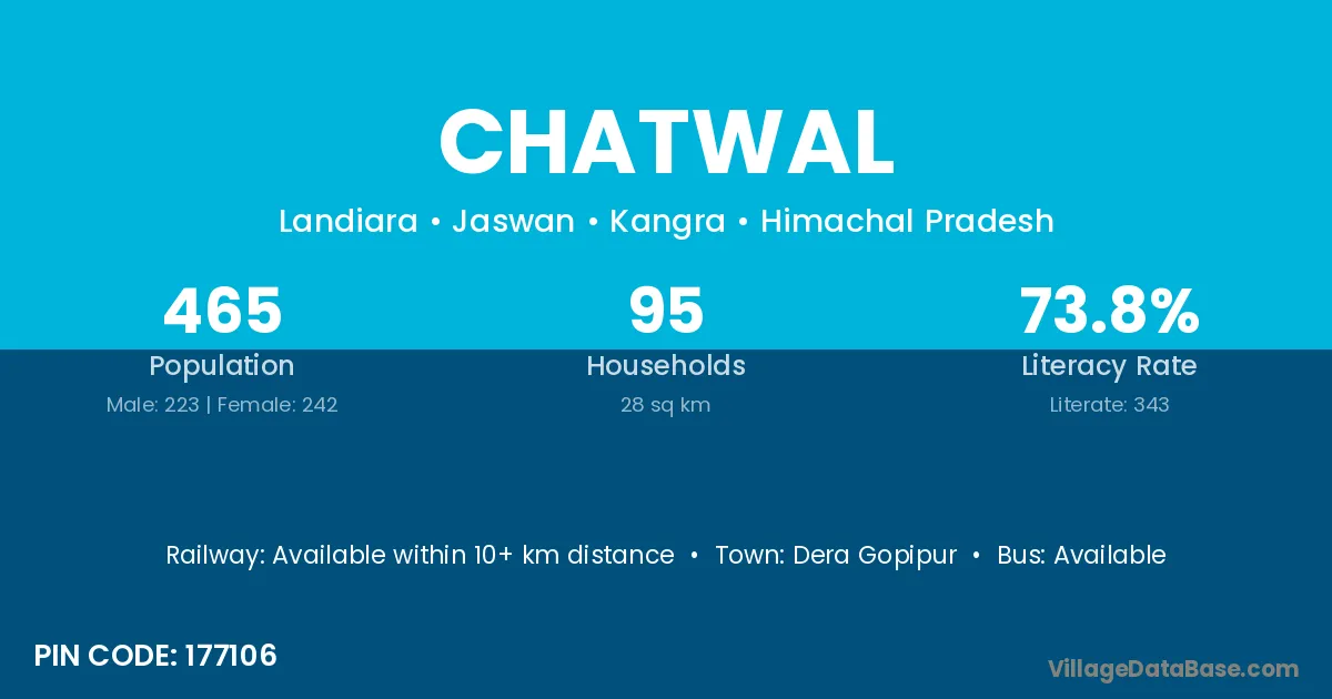 According to Census 2011 information, the village code of Chatwal village is 835214.
