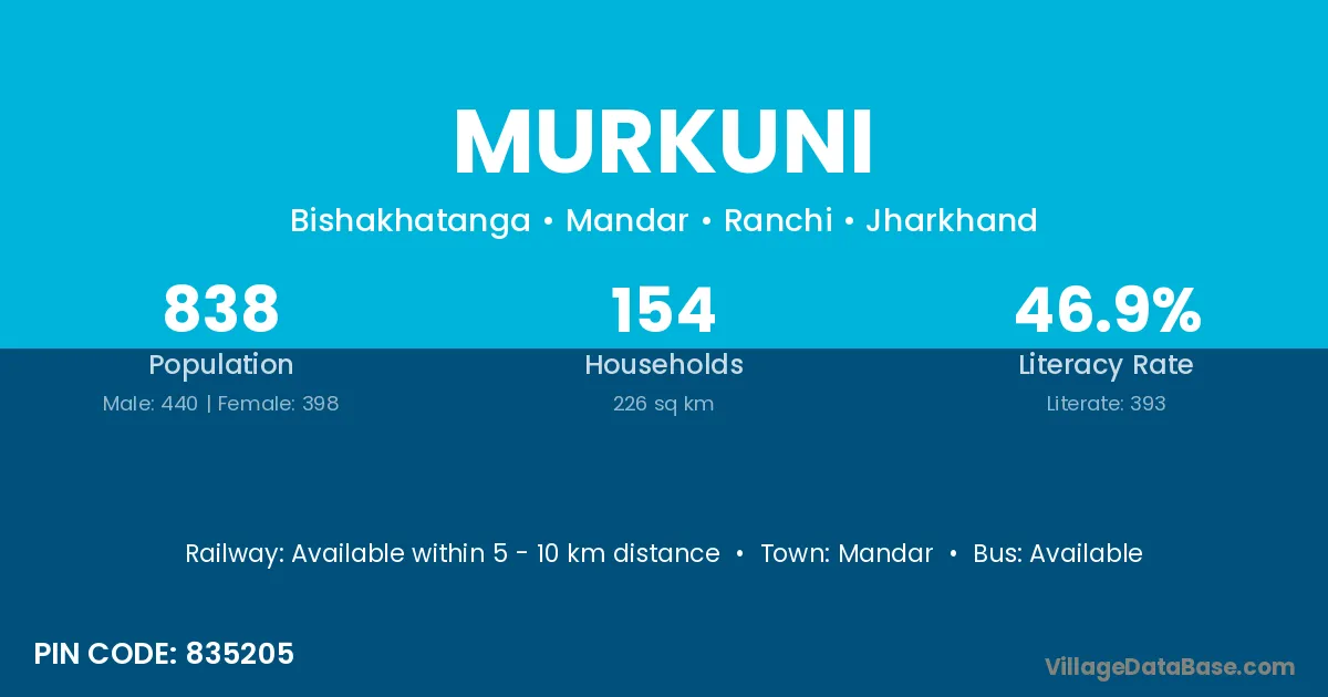 According to Census 2011 information, the village code of Murkuni village is 835205.