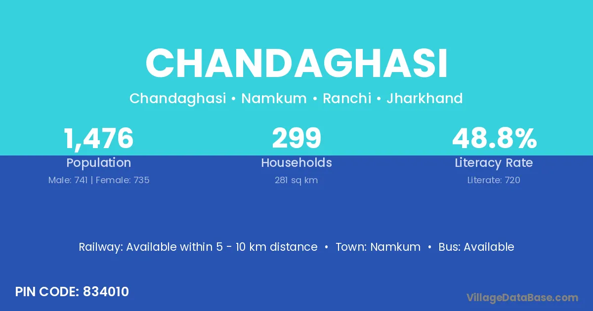Namkum is the nearest town to Chandaghasi village for major economic activities