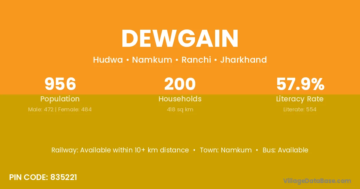 Dewgain village has a total population of 956 people, of which 472 are males and 484 are females.