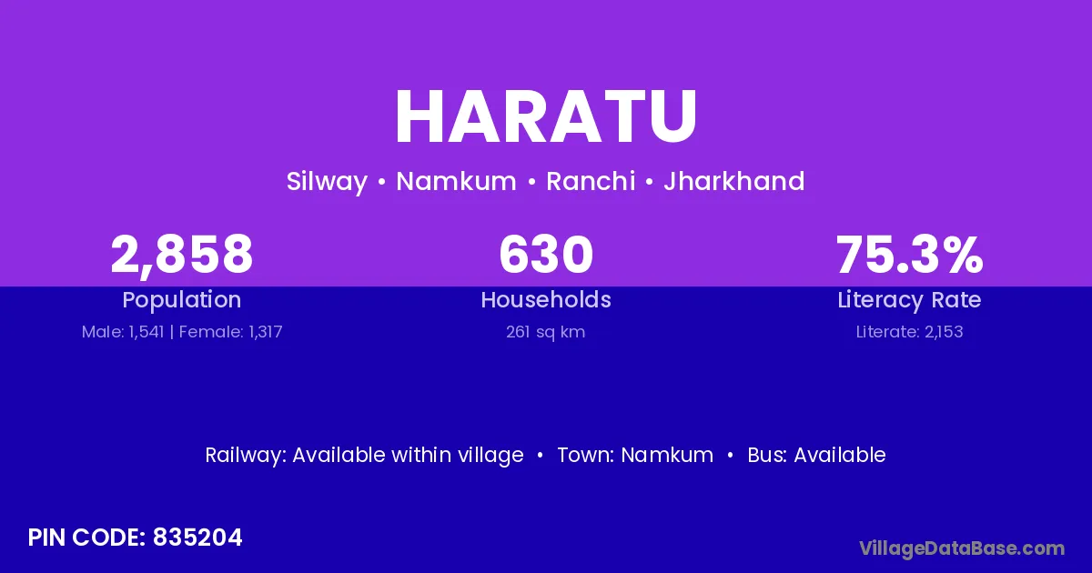 According to Census 2011 information, the village code of Haratu village is 835204.