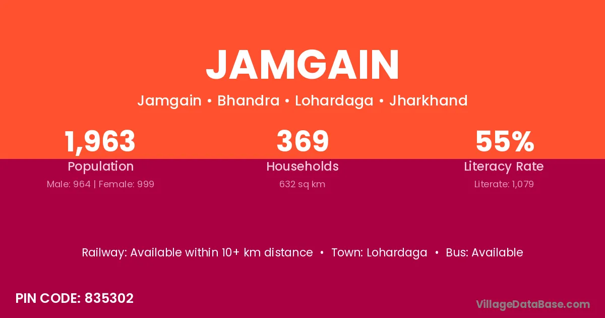 Namkum is the nearest town to Jamgain village for major economic activities