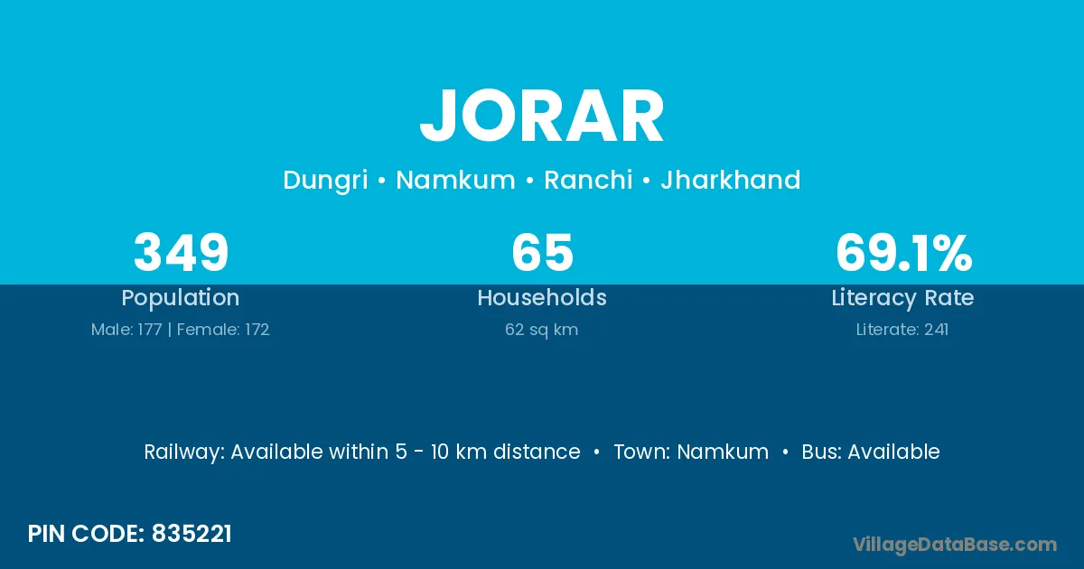 Namkum is the nearest town to Jorar village for major economic activities