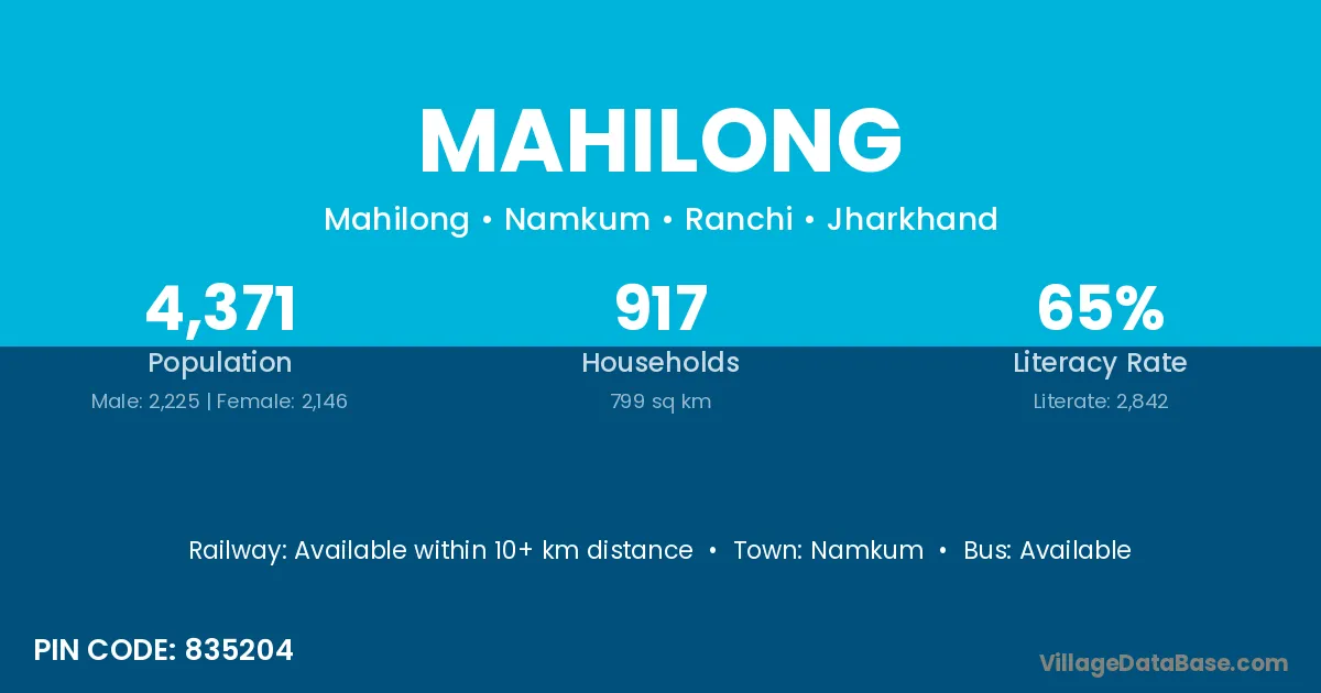 According to Census 2011 information, the village code of Mahilong village is 835204.