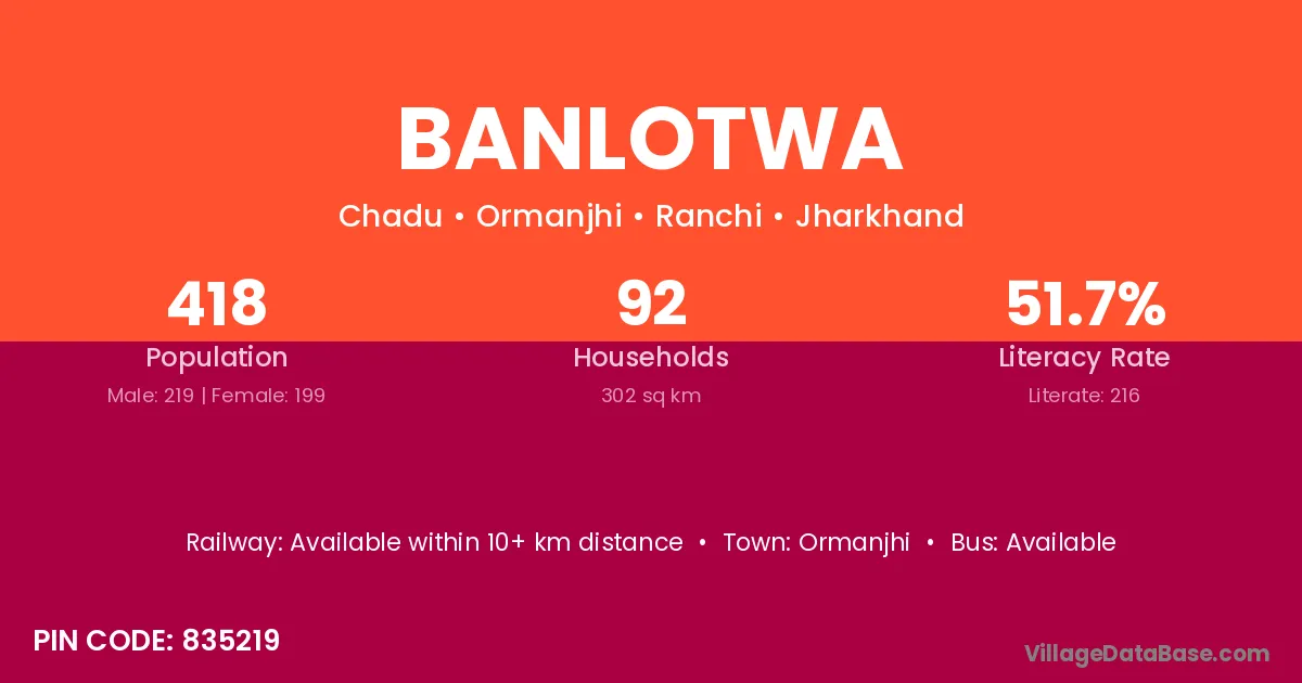 Ormanjhi is the nearest town to Banlotwa village for major economic activities