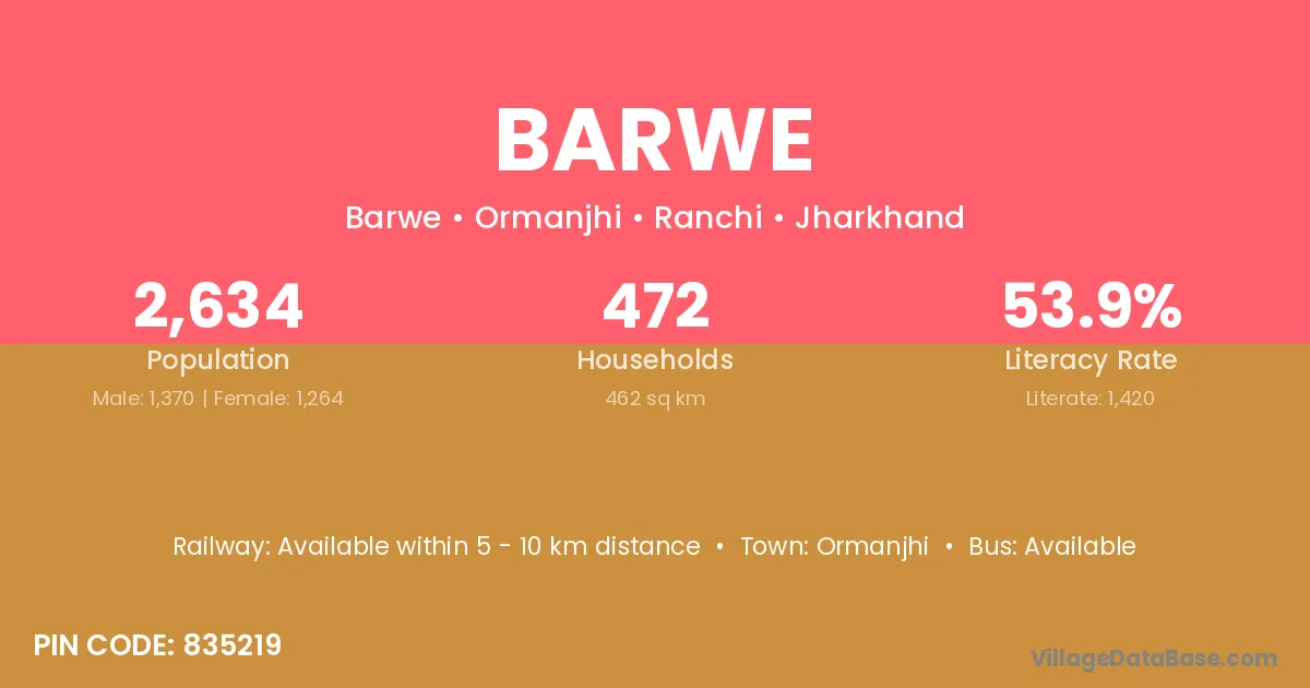 Ormanjhi is the nearest town to Barwe village for major economic activities
