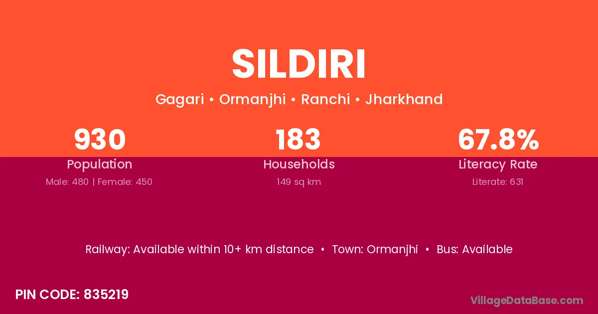 Ormanjhi is the nearest town to Sildiri village for major economic activities