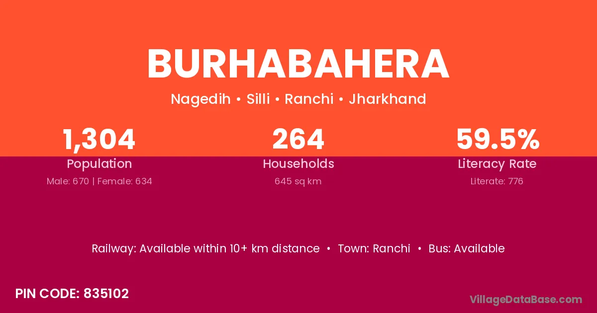 Ranchi is the nearest town to Burhabahera village for major economic activities