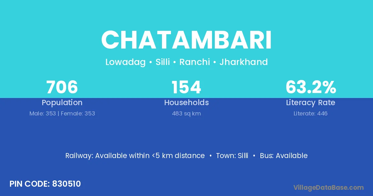 Chatambari village has a total population of 706 people, of which 353 are males and 353 are females.