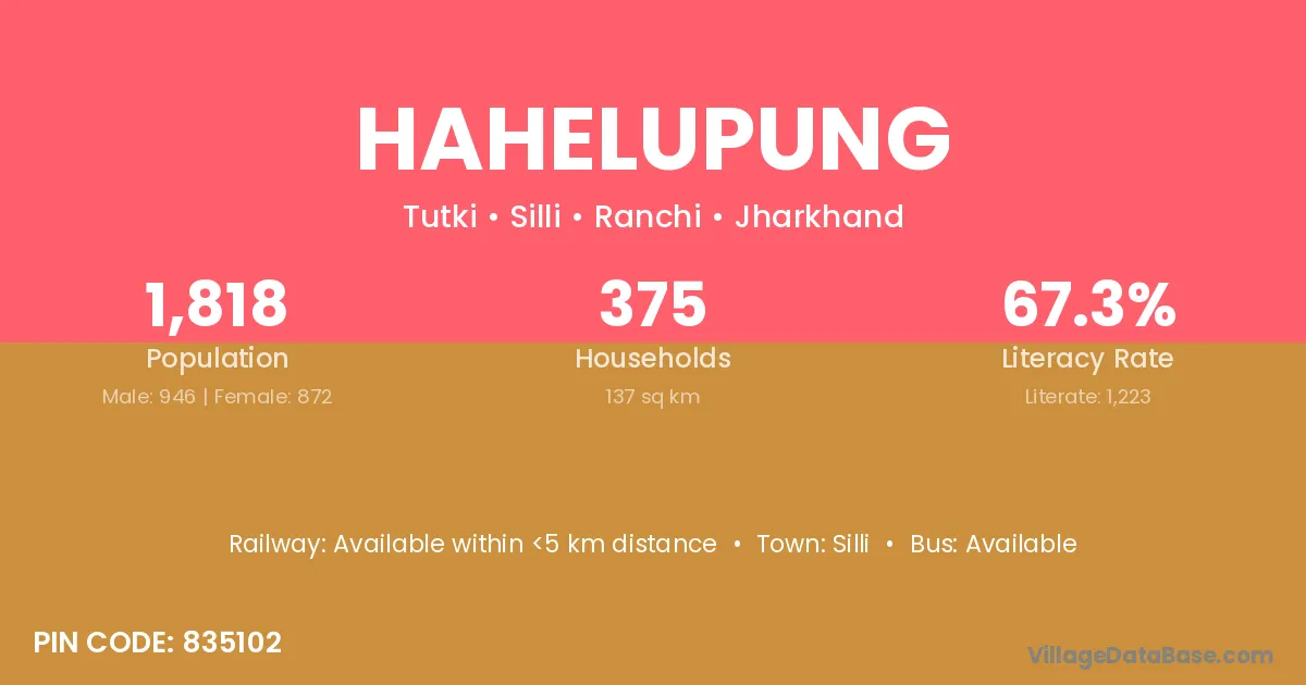 Hahelupung village has a total population of 1,818 people, of which 946 are males and 872 are females.