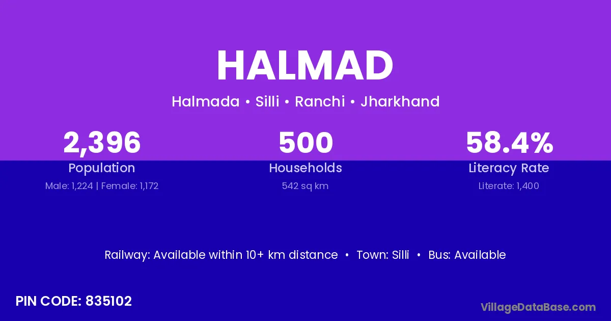 Silli is the nearest town to Halmad village for major economic activities