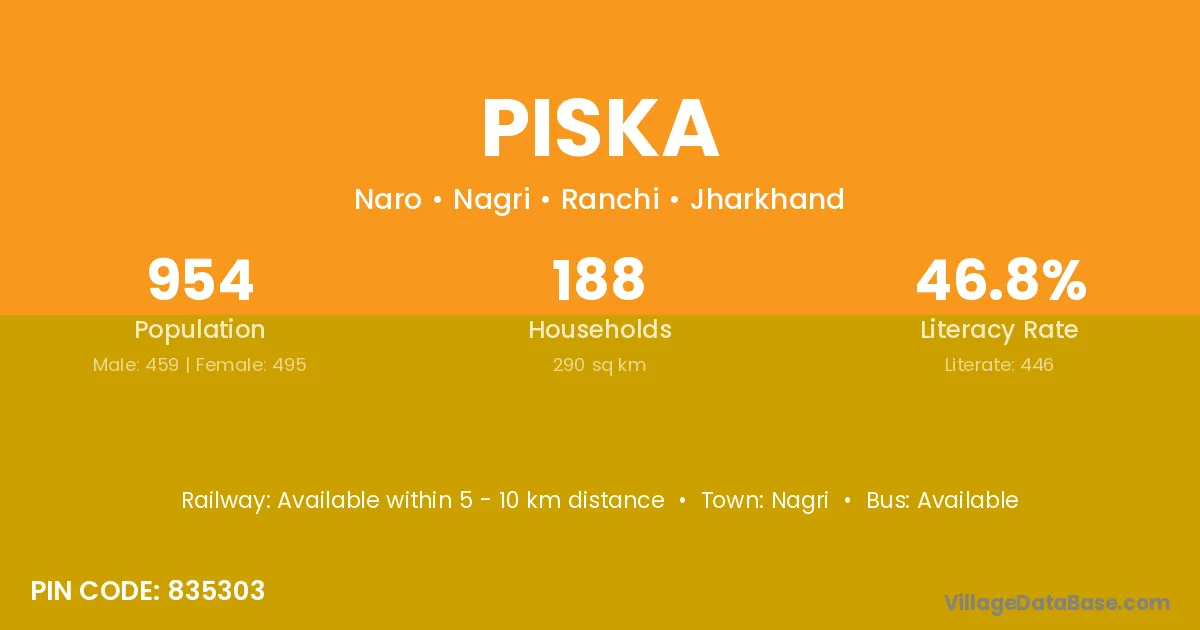 Piska village has a total population of 1,132 people, of which 575 are males and 557 are females.