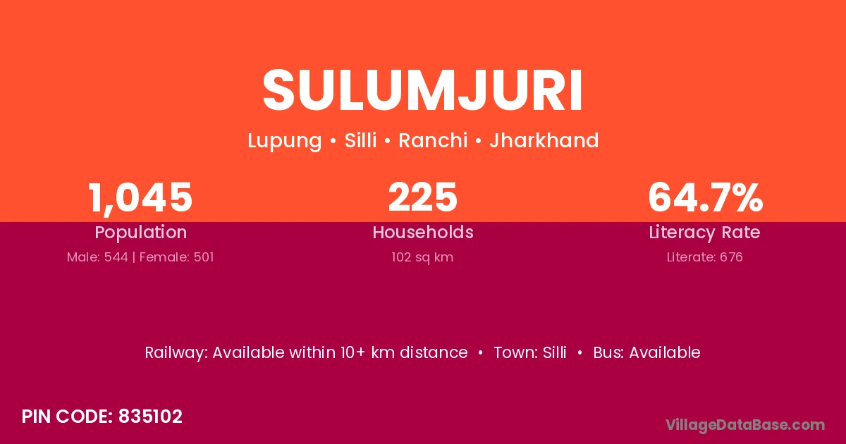 Sulumjuri village has a total population of 1,045 people, of which 544 are males and 501 are females.