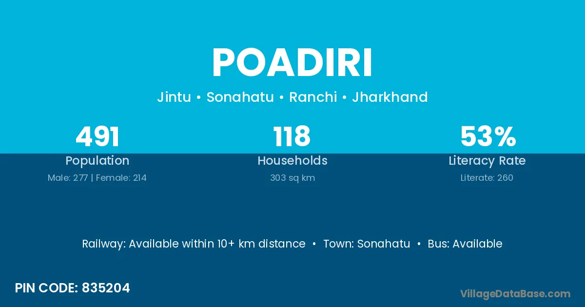 According to Census 2011 information, the village code of Poadiri village is 835204.