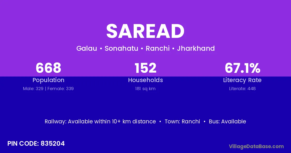 Ranchi is the nearest town to Saread village for major economic activities