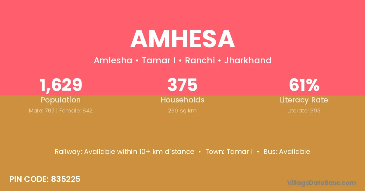 Amhesa village has a total population of 1,629 people, of which 787 are males and 842 are females.