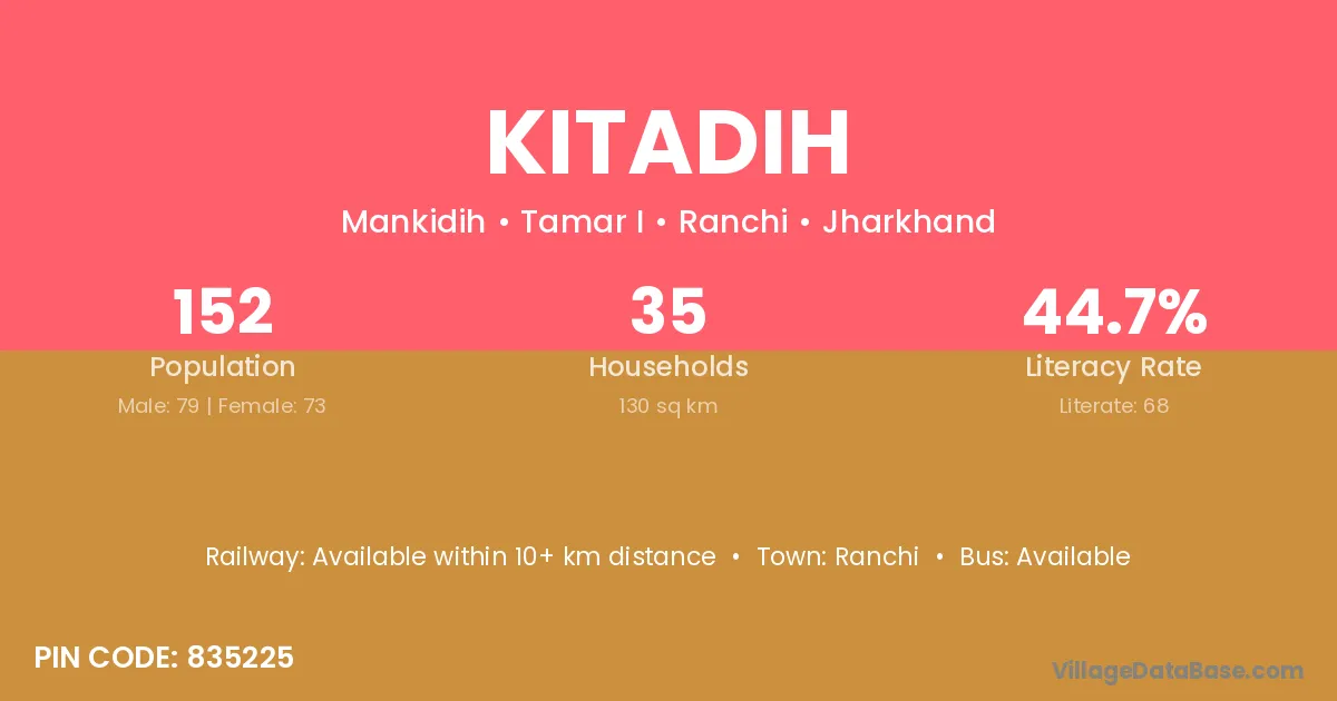 Ranchi is the nearest town to Kitadih village for major economic activities