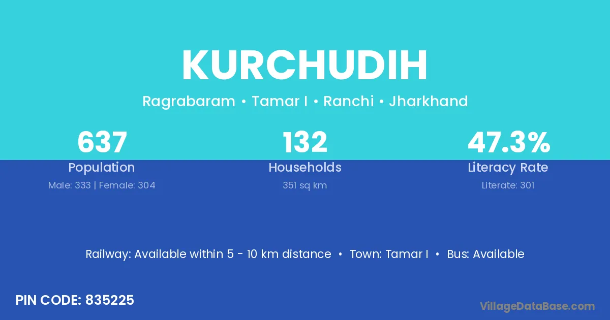 Kurchudih village has a total population of 637 people, of which 333 are males and 304 are females.