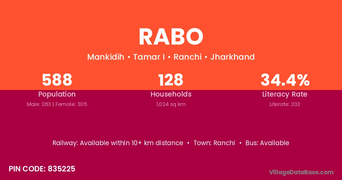 Ranchi is the nearest town to Rabo village for major economic activities