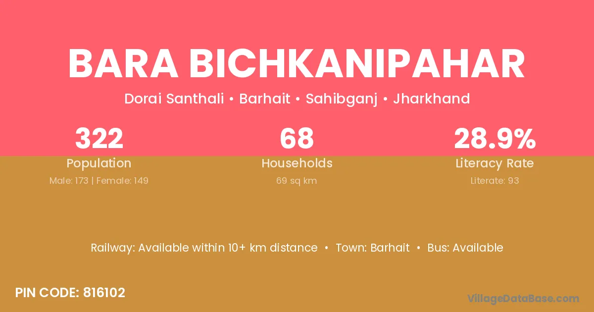 Bara Bichkanipahar village has a total population of 322 people, of which 173 are males and 149 are females.