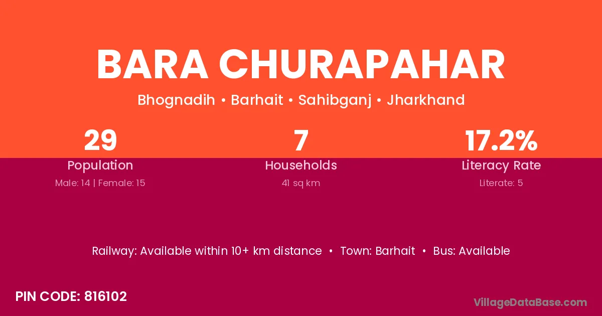 Bara Churapahar village has a total population of 29 people, of which 14 are males and 15 are females.