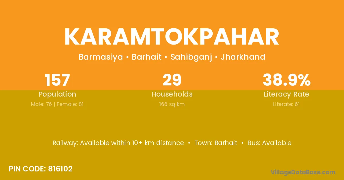 Karamtokpahar village has a total population of 157 people, of which 76 are males and 81 are females.