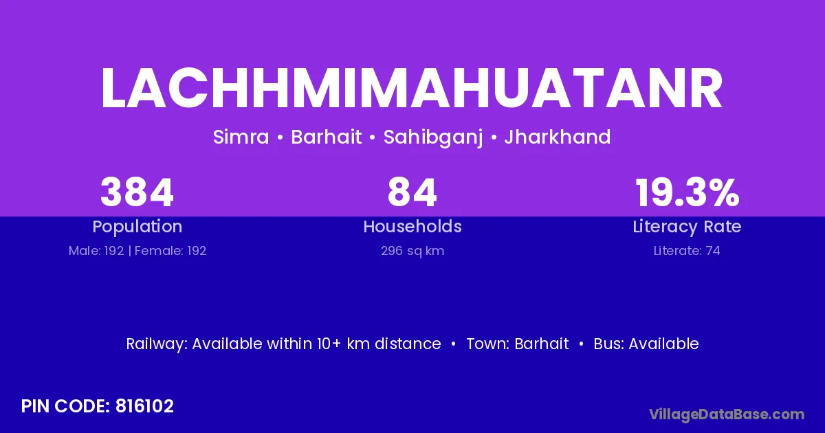 Lachhmimahuatanr village has a total population of 384 people, of which 192 are males and 192 are females.