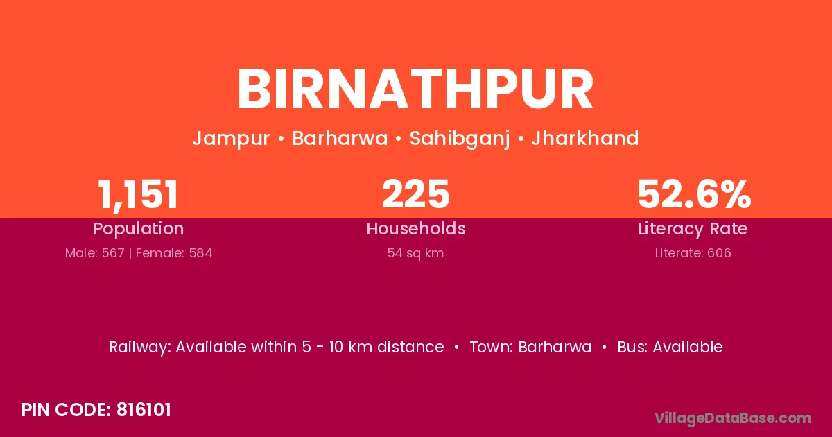 Barharwa is the nearest town to Birnathpur village for major economic activities