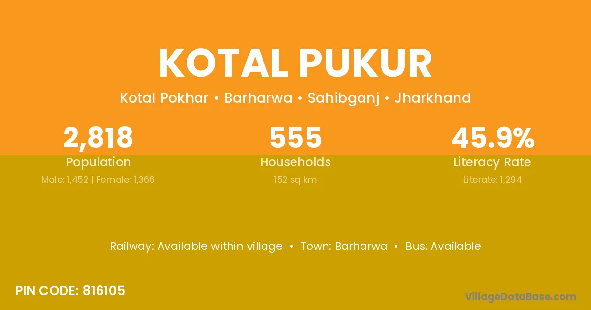Barharwa is the nearest town to Kotal Pukur village for major economic activities