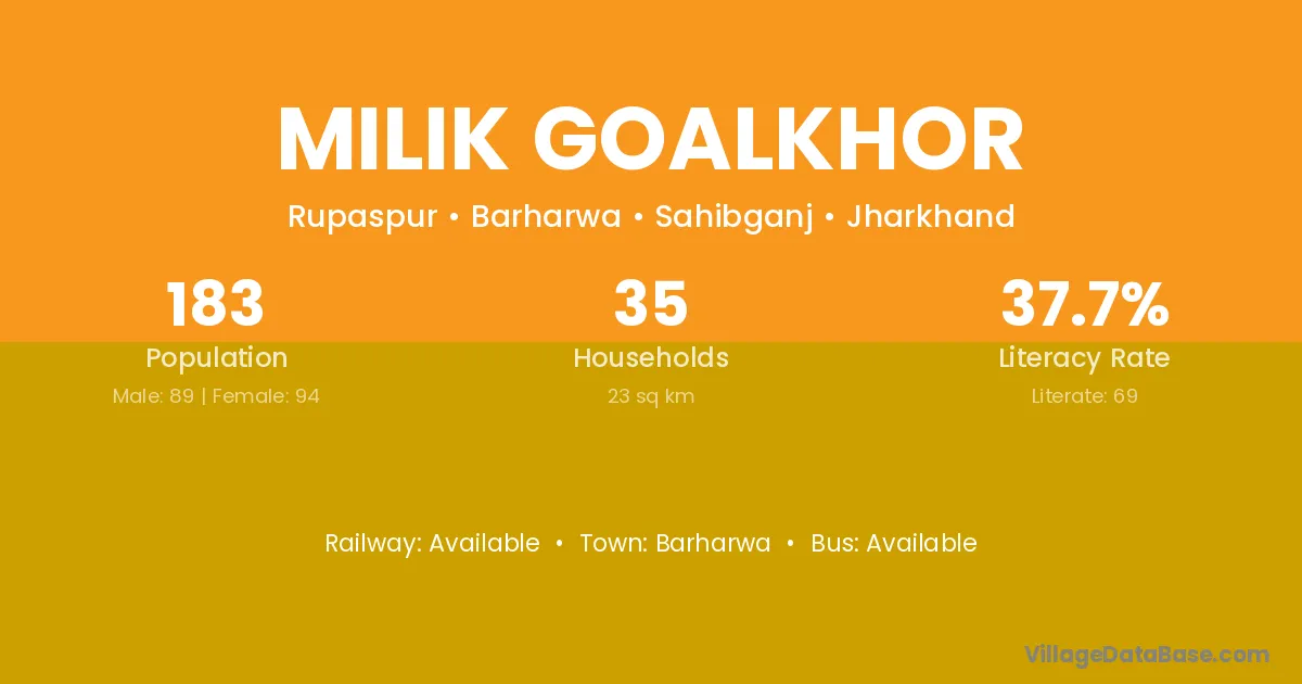 Barharwa is the nearest town to Milik Goalkhor village for major economic activities