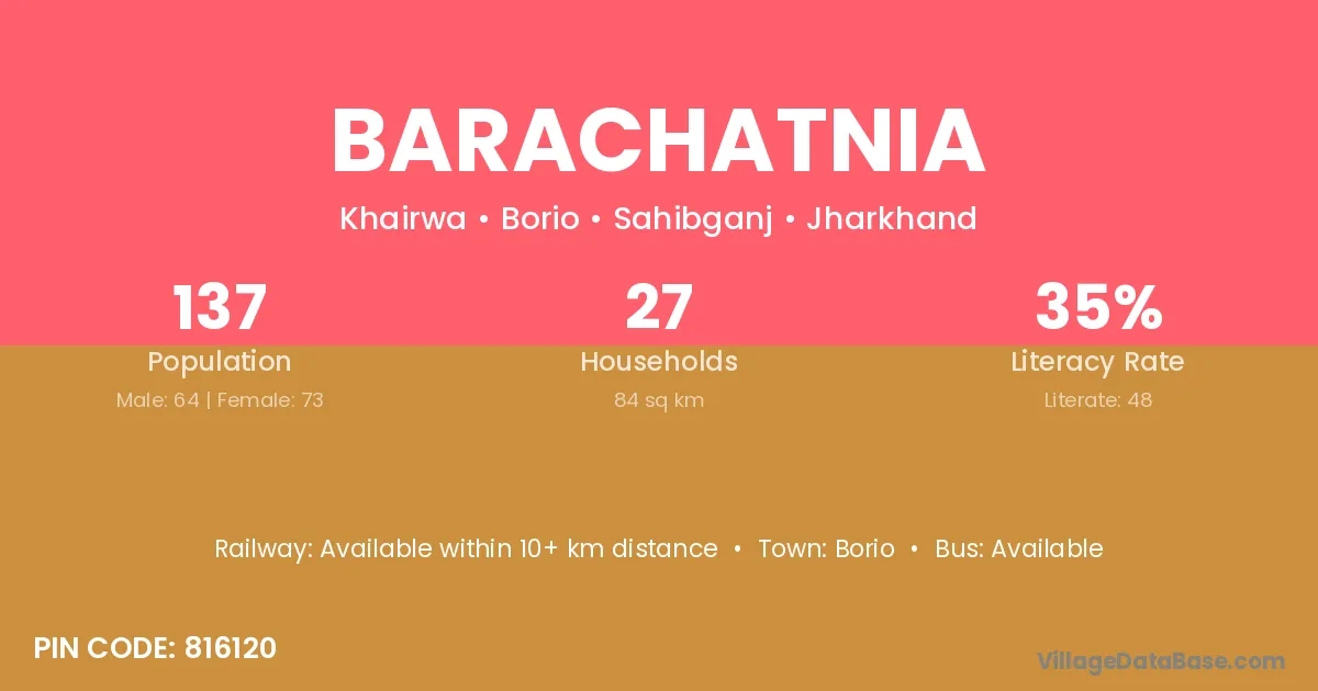 Barachatnia village has a total population of 137 people, of which 64 are males and 73 are females.