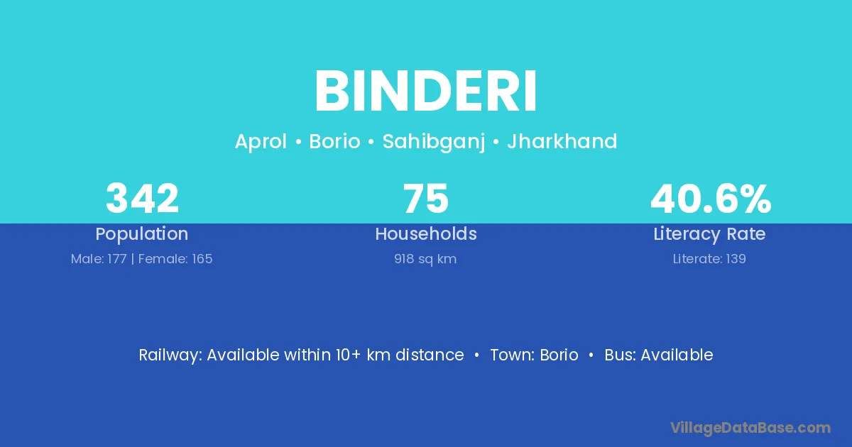 Binderi village is located in the Borio Subdivision of the Sahibganj district in Jharkhand .