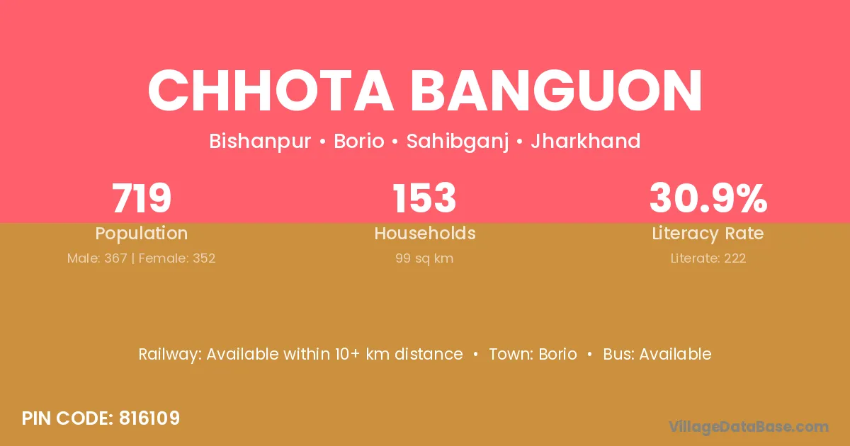 Chhota Banguon village has a total population of 719 people, of which 367 are males and 352 are females.