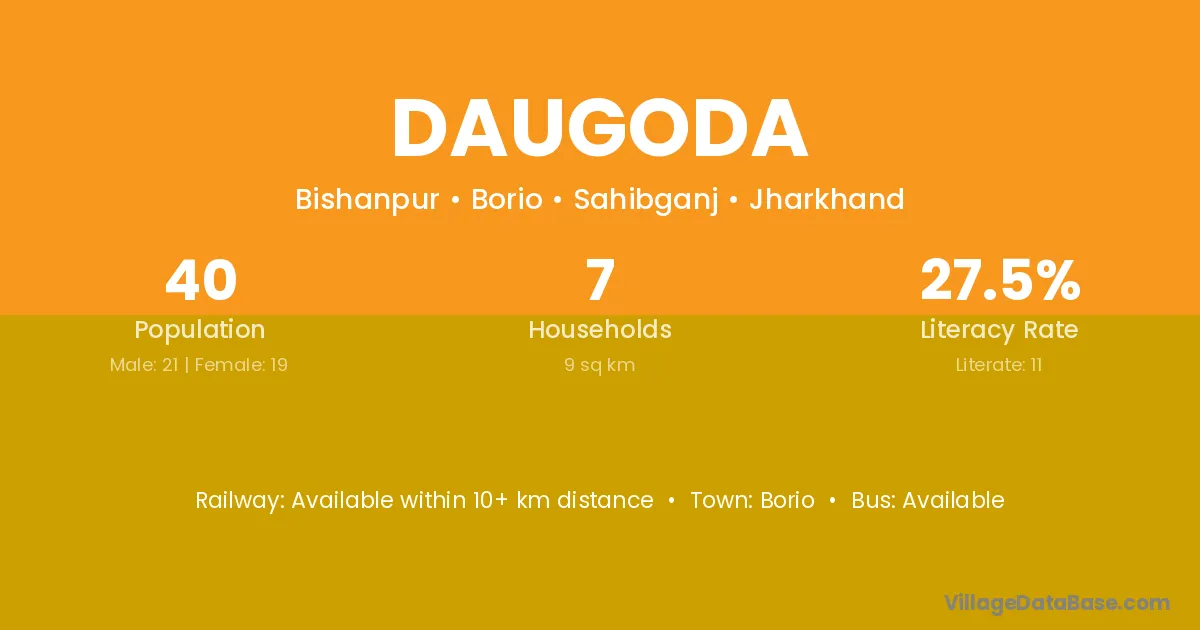 Daugoda village has a total population of 40 people, of which 21 are males and 19 are females.