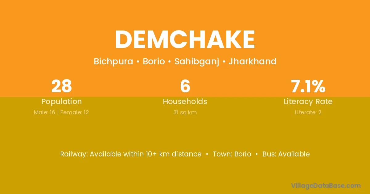 Demchake village is located in the Borio Subdivision of the Sahibganj district in Jharkhand .