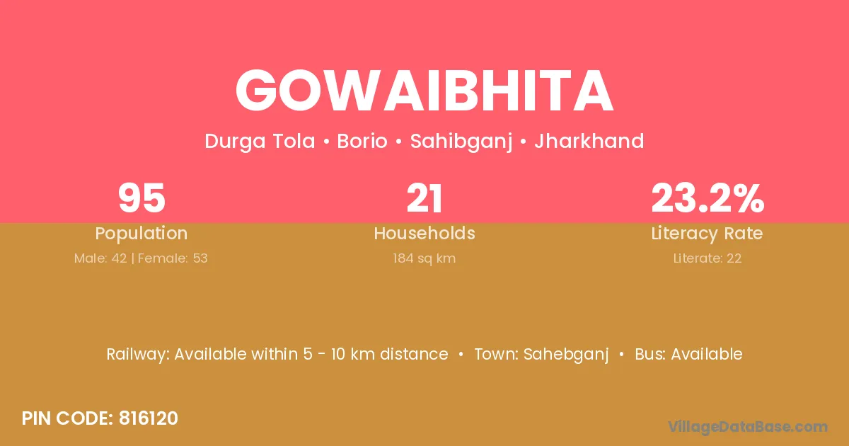 Gowaibhita village has a total population of 95 people, of which 42 are males and 53 are females.