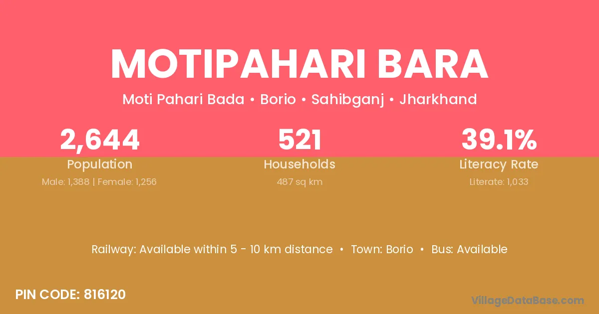 Motipahari Bara village has a total population of 2,644 people, of which 1,388 are males and 1,256 are females.