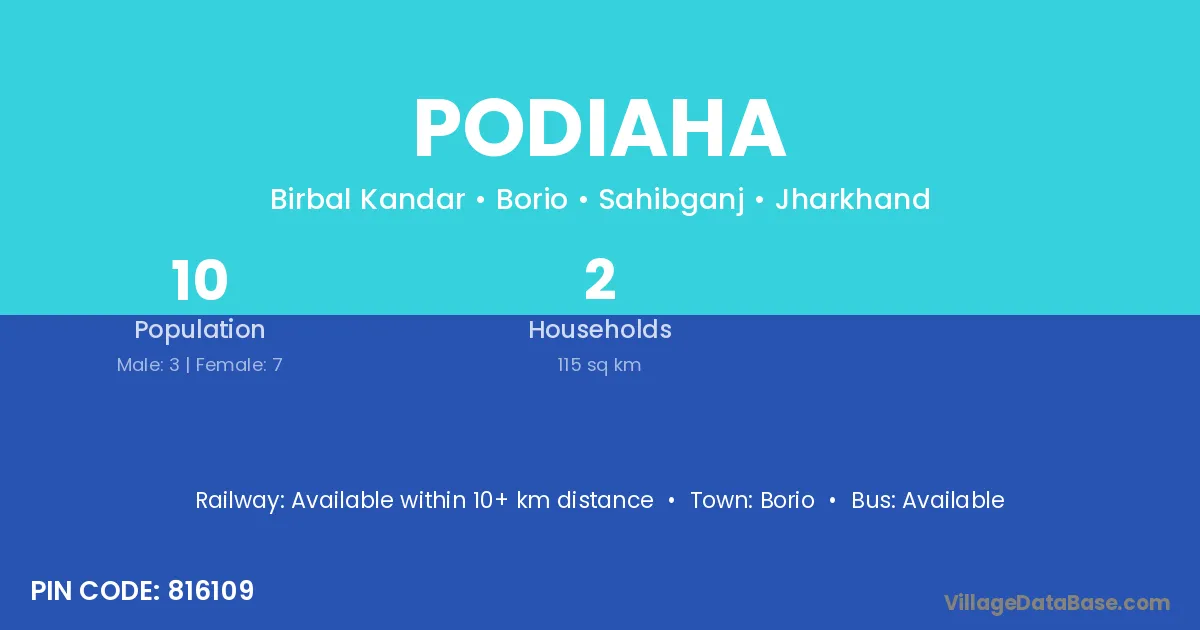 Podiaha village is located in the Borio Subdivision of the Sahibganj district in Jharkhand .