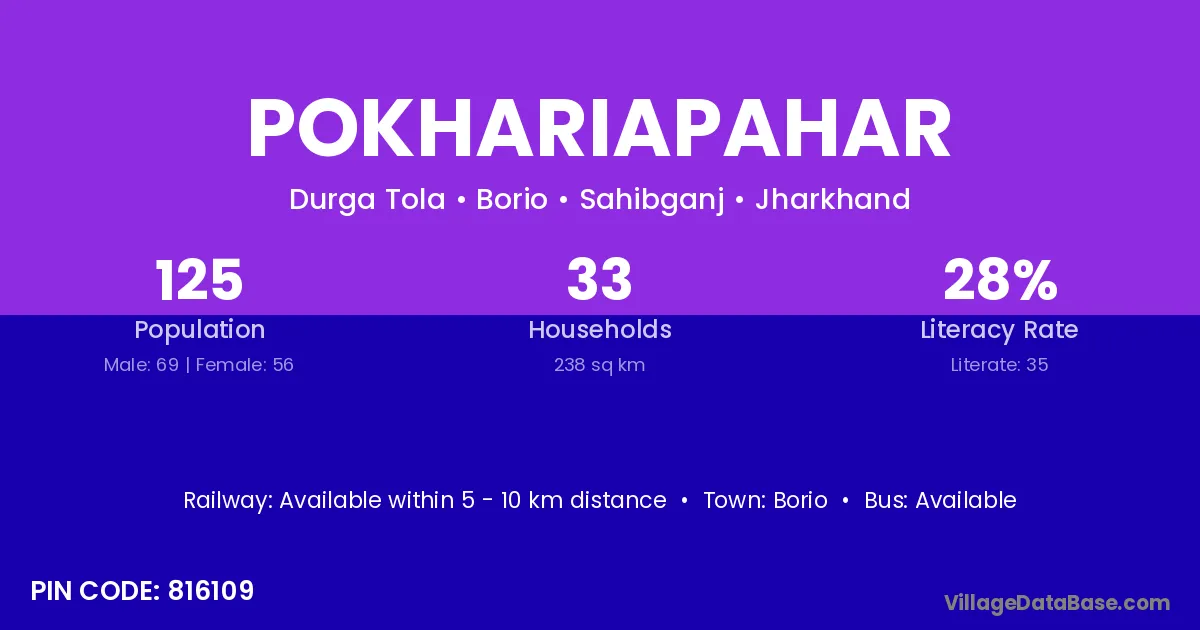 Pokhariapahar village has a total population of 125 people, of which 69 are males and 56 are females.