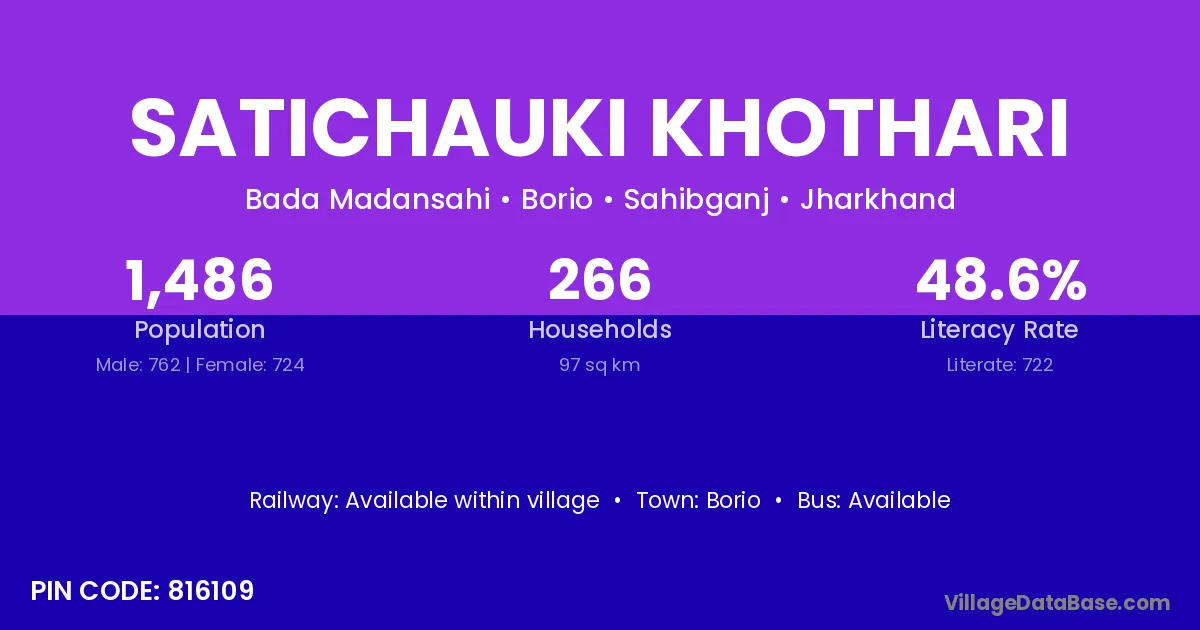 Satichauki Khothari village has a total population of 1,486 people, of which 762 are males and 724 are females.