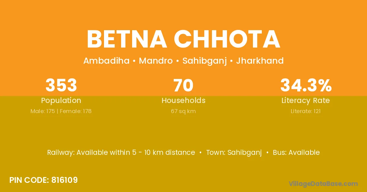 Sahibganj is the nearest town to Betna Chhota village for major economic activities