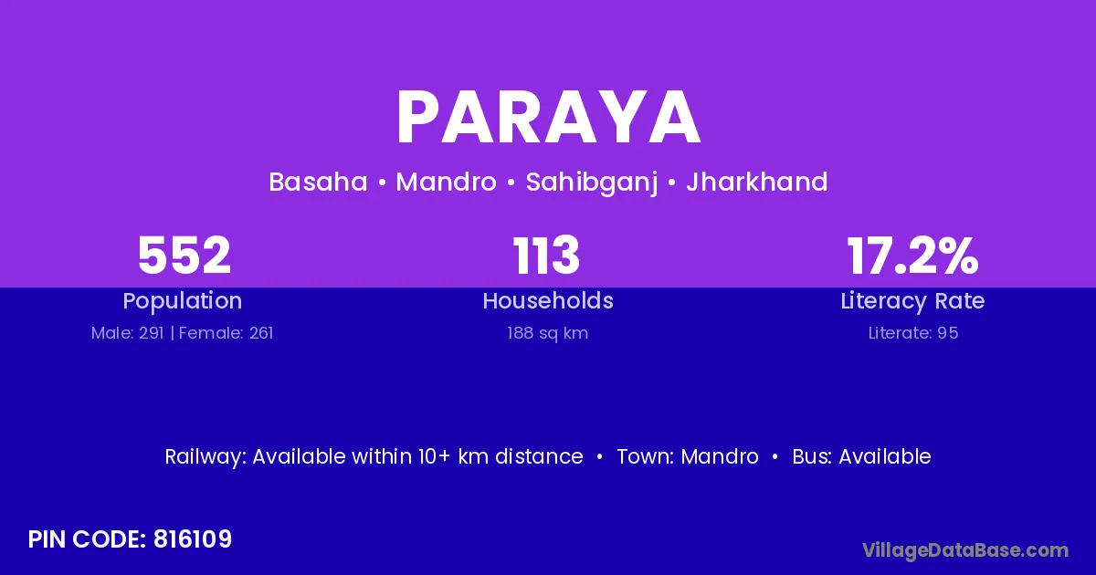 Paraya village is located in the Mandro Subdivision of the Sahibganj district in Jharkhand .
