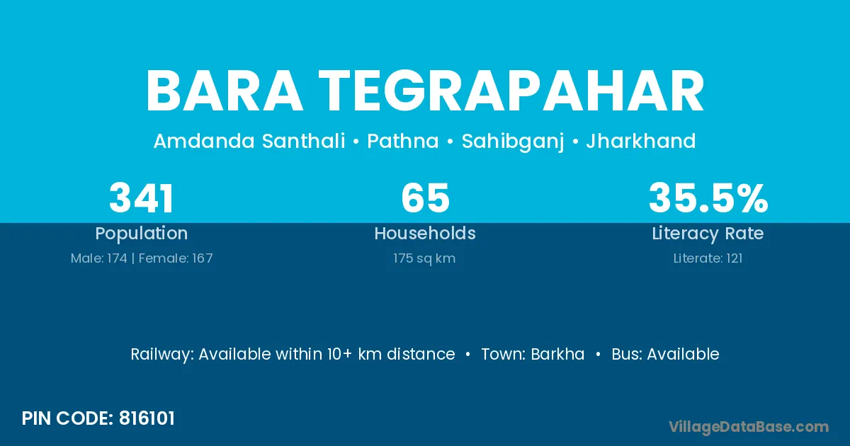 Bara Tegrapahar village has a total population of 341 people, of which 174 are males and 167 are females.