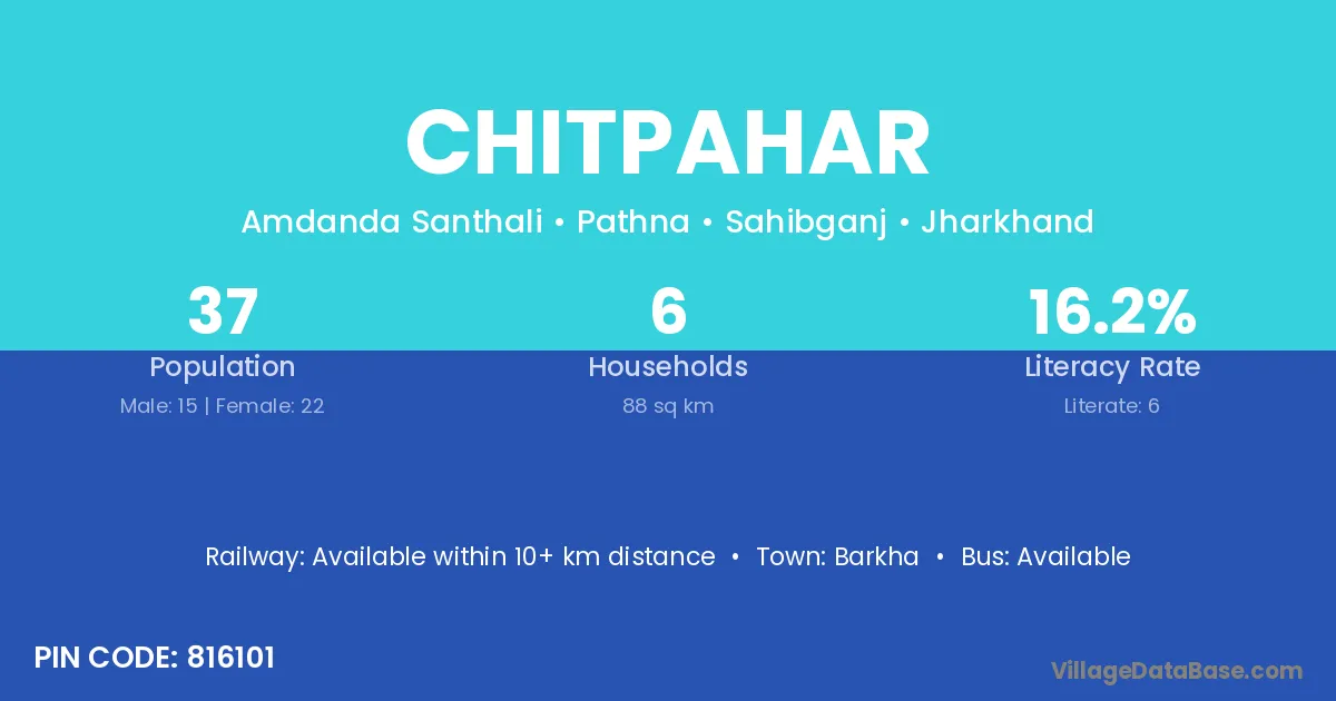 Chitpahar village has a total population of 37 people, of which 15 are males and 22 are females.