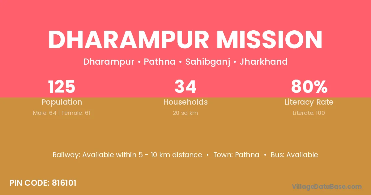 Dharampur Mission village has a total population of 125 people, of which 64 are males and 61 are females.