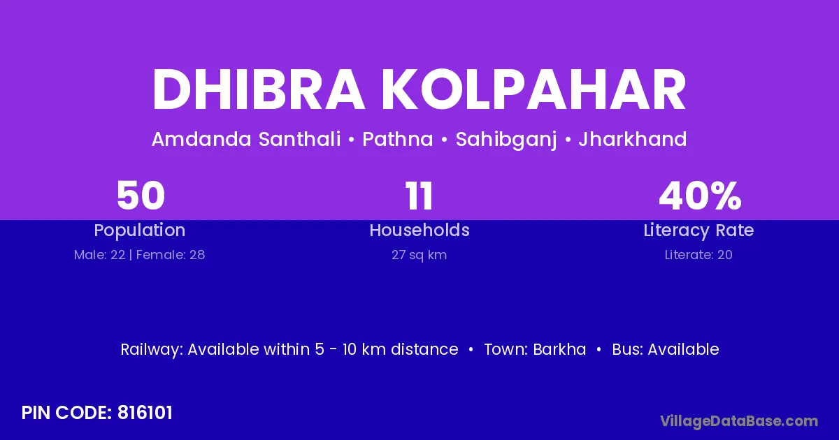 Barkha is the nearest town to Dhibra Kolpahar village for major economic activities