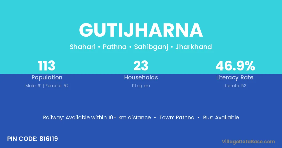 Pathna is the nearest town to Gutijharna village for major economic activities