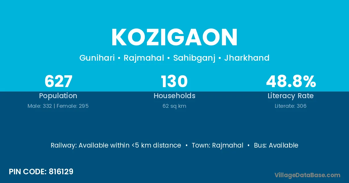 Rajmahal is the nearest town to Kozigaon village for major economic activities