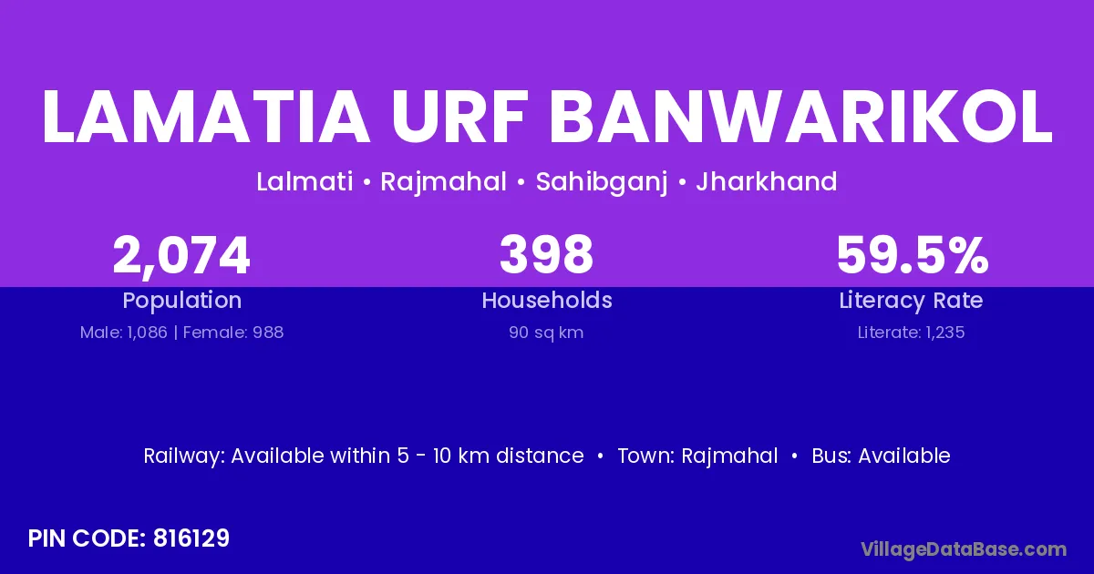 Rajmahal is the nearest town to Lamatia Urf Banwarikol village for major economic activities