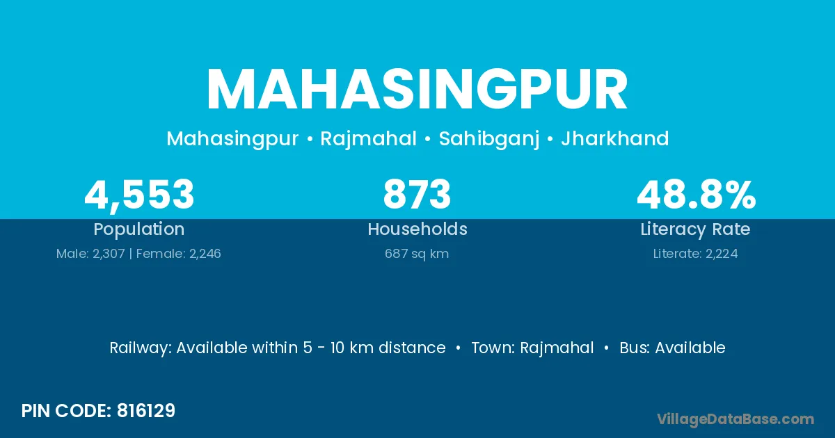 Rajmahal is the nearest town to Mahasingpur village for major economic activities